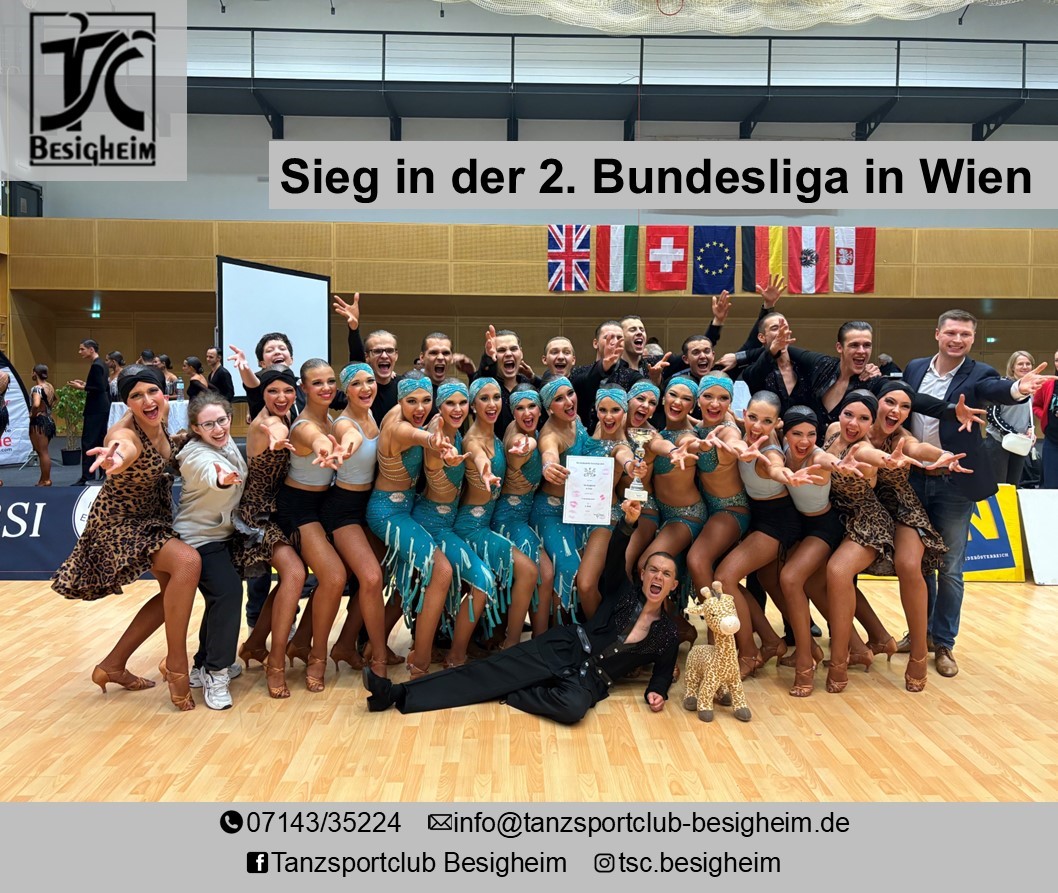 Mit einem starken Auftakt präsentierten sich die beiden neu formierten Lateinformationen des TSC Besigheim beim Dance Cup im österreichischen Perchtoldsdorf bei Wien. Zur Vorbereitung auf die bevorstehende Saison waren die Tänzerinnen und Tänzer bereits am Freitag angereist, nutzten den Nachmittag für einen Besuch auf dem Wiener Weihnachtsmarkt und starteten am frühen Samstagmorgen, 6. Dezember, in die Stellproben.